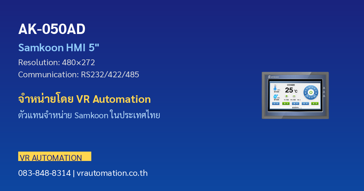 VR Automation เป็นตัวแทนจำหน่ายสินค้า Samkoon ในประเทศไทย จำหน่ายจอ HMI, PLC Controller, Servo Motor และอุปกรณ์ระบบอัตโนมัติครบวงจร พร้อมบริการให้คำปรึกษา ออกแบบระบบ และบริการหลังการขาย