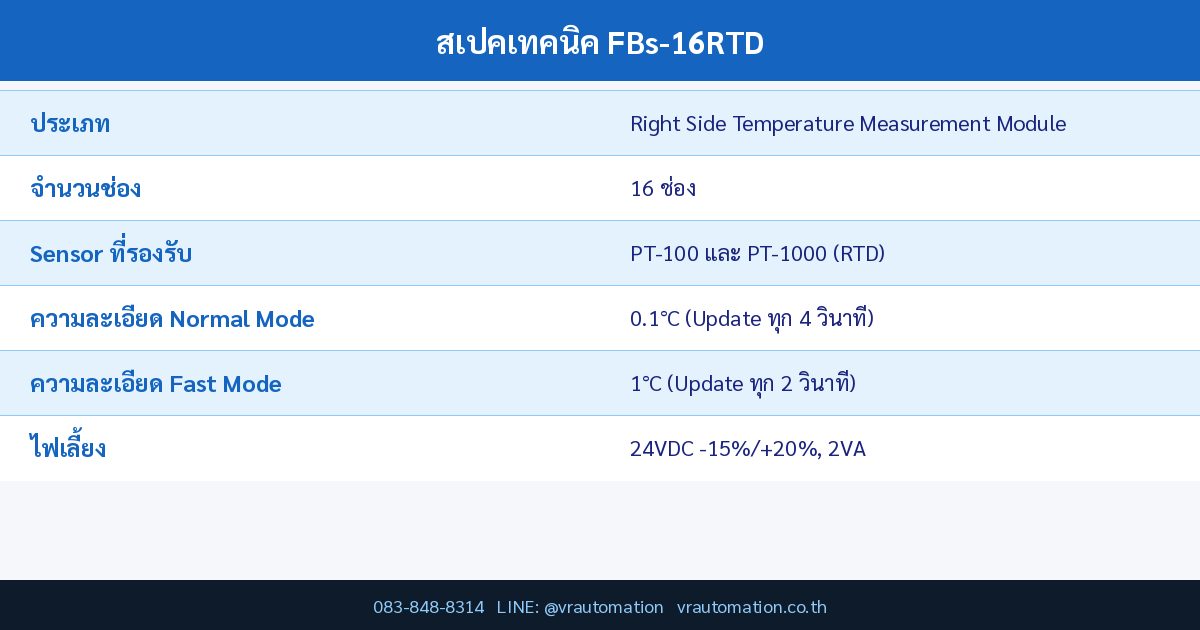 สรุปสเปค FBs-16RTD FATEK Temperature Measurement Module | VR Automation