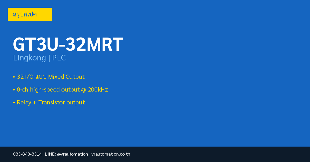 GT3U-32MRT จาก Lingkong เป็น PLC ที่มี Output แบบผสม (Mixed) ระหว่าง Relay และ Transistor พร้อมความสามารถ High-speed output ถึง 200kHz