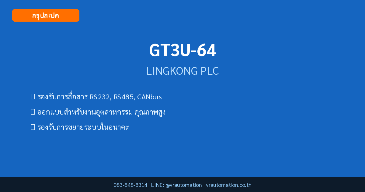 GT3U-64 เป็น PLC จาก LINGKONG ที่ออกแบบมาสำหรับงานอุตสาหกรรม ด้วยสเปคที่ตอบโจทย์การใช้งานหลากหลาย บทความนี้สรุปสเปคเทคนิคครบถ้วนจากเอกสาร Catalog อย่างเป็นทางการ เพื่อช่วยให้วิศวกรและช่างเทคนิคตัดสินใจเลือกได้ง่ายขึ้น