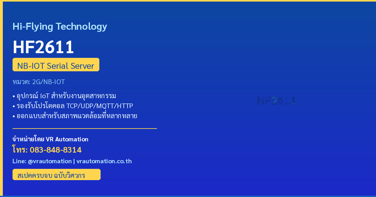 HF2611 จาก Hi-Flying เป็นอุปกรณ์ Serial Serverรองรับ NB-IOT Serial Server ออกแบบมาสำหรับงาน IoT อุตสาหกรรม พร้อมโปรโตคอลครบครัน ทนทานใช้งานในสภาพแวดล้อมที่หลากหลาย