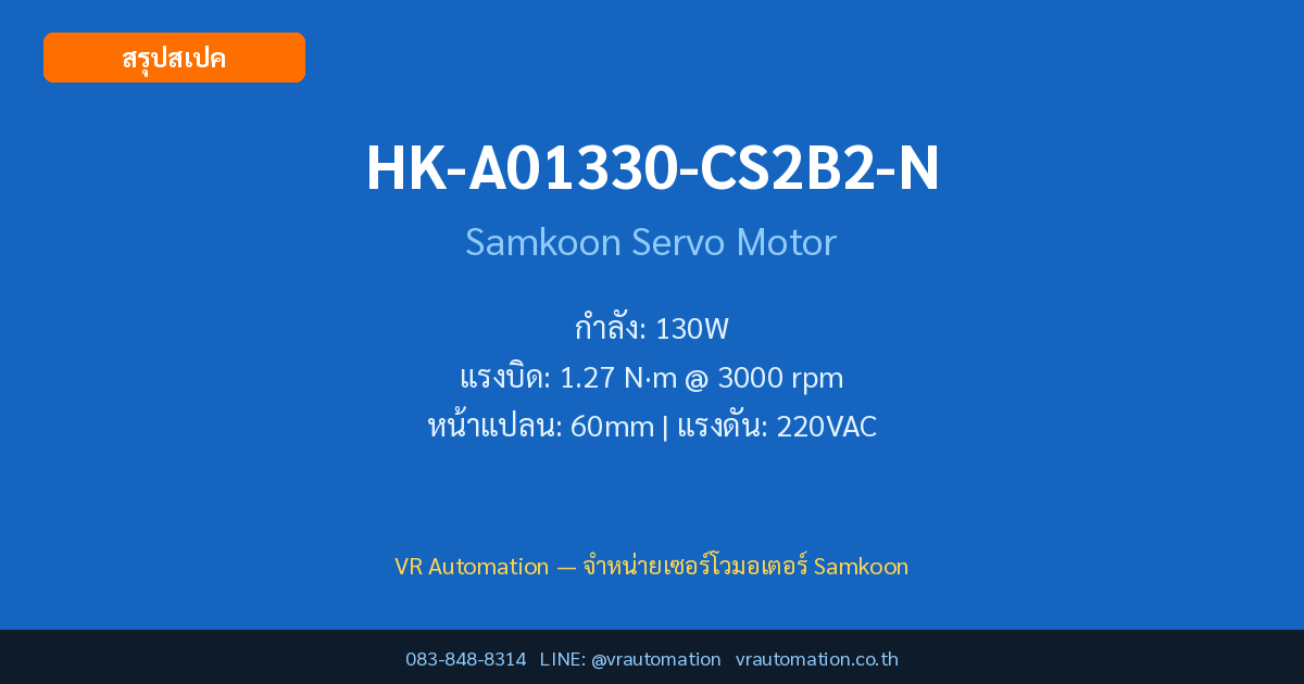 สรุปสเปค HK-A01330-CS2B2-N Samkoon Servo Motor | VR Automation