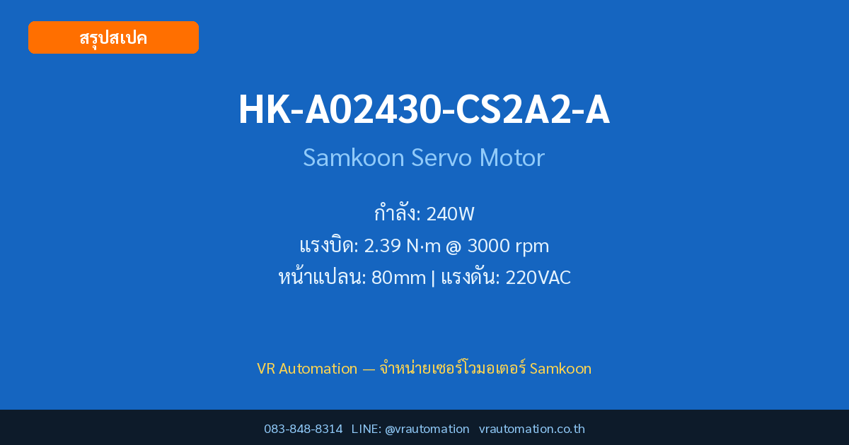 สรุปสเปค HK-A02430-CS2A2-A Samkoon Servo Motor | VR Automation