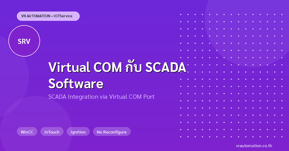 SCADA Software ส่วนใหญ่ในโรงงานถูกออกแบบมาให้ใช้ COM Port ในการสื่อสารกับ PLC ด้วย IOTService Virtual COM คุณสามารถให้ SCADA เห็น PLC ผ่าน Network เสมือนกับว่าต่ออยู่กับ COM Port โดยตรง โดยไม่ต้องแก้ไข SCADA Configuration เลย