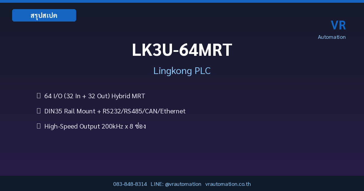 - Catalog: LK3U PLC _ LINGKONG.html + LK3U-PLC.pdf — VR Automation (เอกสารเทคนิคจากผู้ผลิต)