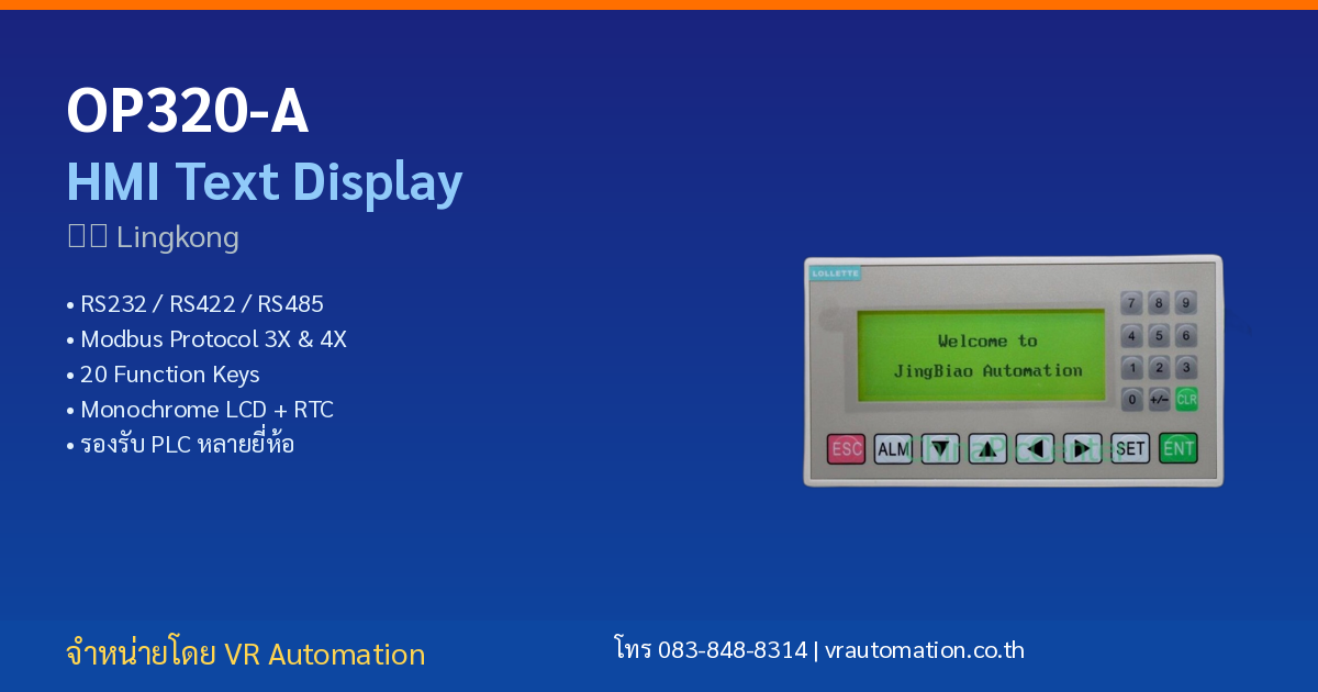 VR Automation จำหน่าย OP320-A HMI Text Display จาก 灵控 Lingkong พร้อมบริการให้คำปรึกษาด้านระบบ Automation, PLC Programming และการเชื่อมต่อ HMI กับ PLC ทุกยี่ห้อ