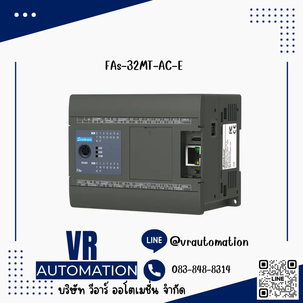 - FAs-32MT-AC-E: PLC ระบบ AC ทรานซิสเตอร์ มี 32 จุด I/O รวมทั้ง Digital Input และ Output. พอร์ตเชื่อมต่อสื่อสาร: ไม่ระบุเฉพาะ, รองรับการสื่อสารมาตรฐาน PLC ทั่วไป. แหล่งจ่ายไฟ: ใช้ไฟ AC. วัสดุตัวเครื่องมีความทนทาน เหมาะสำหรับงานอุตสาหกรรม.