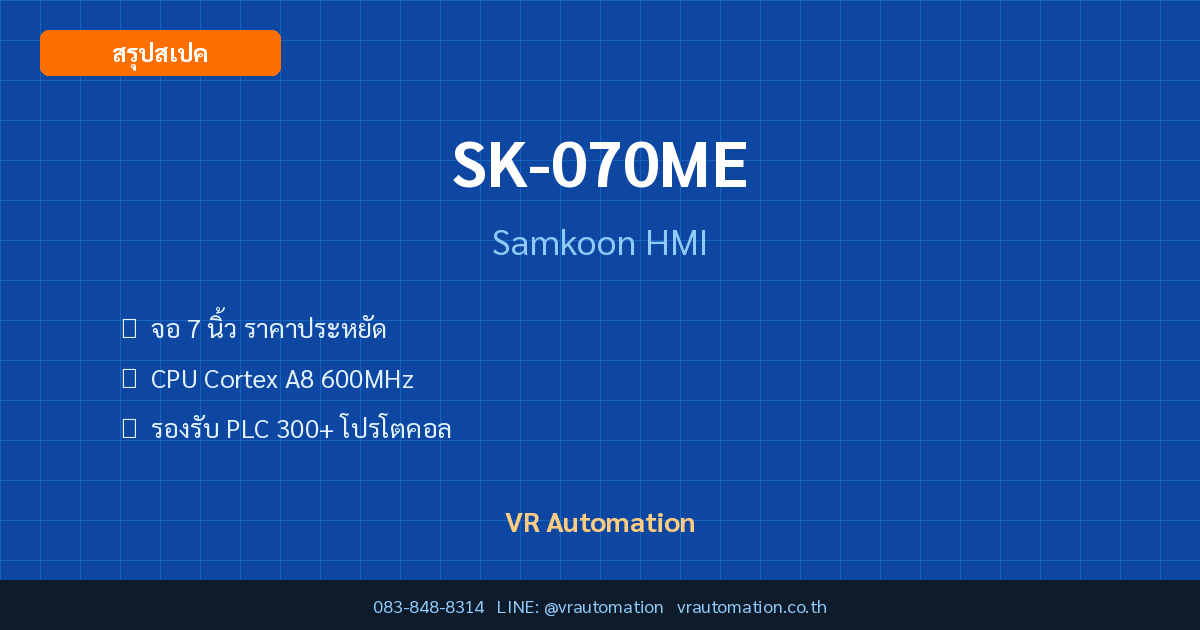 สรุปย่อ: SK-070ME จาก Samkoon เป็น HMI ที่โดดเด่นด้วย จอ 7 นิ้ว ราคาประหยัด เหมาะสำหรับงานระบบอัตโนมัติในอุตสาหกรรม จำหน่ายโดย VR Automation พร้อมบริการหลังการขายครบวงจร