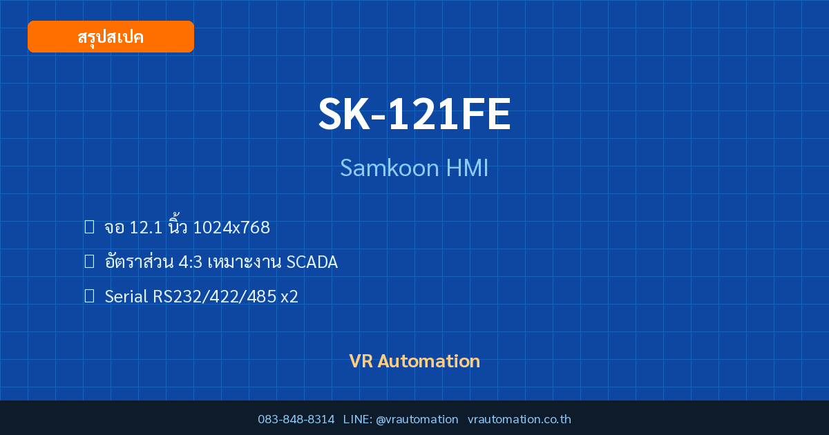 สรุปย่อ: SK-121FE จาก Samkoon เป็น HMI ที่โดดเด่นด้วย จอ 12.1 นิ้ว 1024×768 เหมาะสำหรับงานระบบอัตโนมัติในอุตสาหกรรม จำหน่ายโดย VR Automation พร้อมบริการหลังการขายครบวงจร