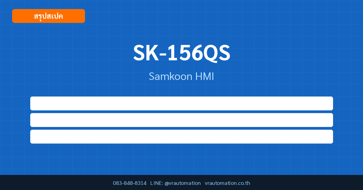 สรุปย่อ: SK-156QS เป็น HMI จาก Samkoon จอขนาด 15.6″ (16:9) จอ 15.6 นิ้ว Full HD 1920×1080 CPU Cortex A7 1.2GHz + 256MB RAM เหมาะสำหรับงานอุตสาหกรรมที่ต้องการความเสถียรและคุณภาพสูง จำหน่ายโดย VR Automation