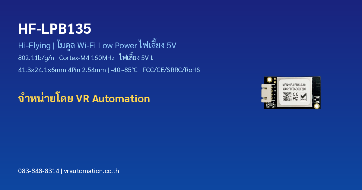 จำหน่าย HF-LPB135 Hi-Flying — โมดูล Wi-Fi Low Power ไฟเ […]