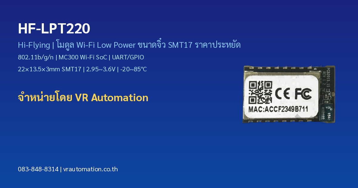 จำหน่าย HF-LPB135 Hi-Flying — โมดูล Wi-Fi Low Power ไฟเ […]