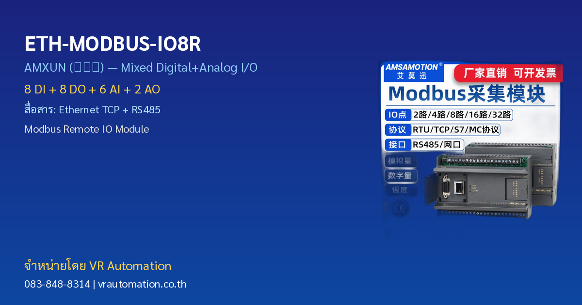 จำหน่าย ETH-MODBUS-IO8R AMXUN (艾莫迅) โมดูล Mixed I/O 8DI […]